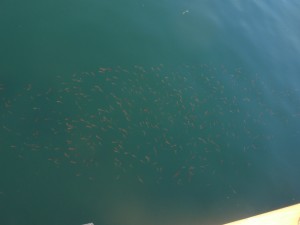 港から海を覗くと沢山のイワシの群れやネンブツダイの群れがそこら中にいます。