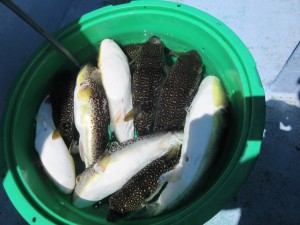 今年の釣果は去年よりは少ないものの十分お土産になるほどのジャンボショウサイフグは健在です。