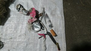 分かりますか?包丁が捨ててあるのが、、、カッターの刃も捨てられてます。