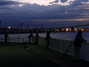 案の定シーバス狙いとエギ釣りの人で賑わってます。ツバサ橋に向かてひたすらフルキャストしています。私がいる間のヒットはありませんでしたが誰かしらシーバスかアオリイカがヒットしそうな気配でしたね。