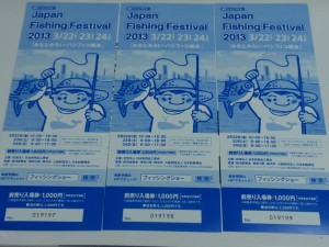 フィッシングショー2013前売り券、釣具屋にて販売中